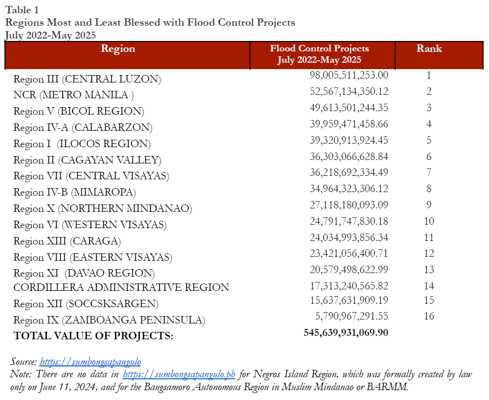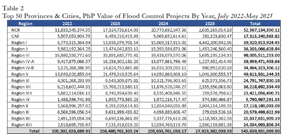 Each got only PhP3.4 billion to PhP3.7 billion in flood-control projects, from July 2022 to May 2025, or just a sliver and at most only 10 percent of the total amounts received by the top-five provinces.